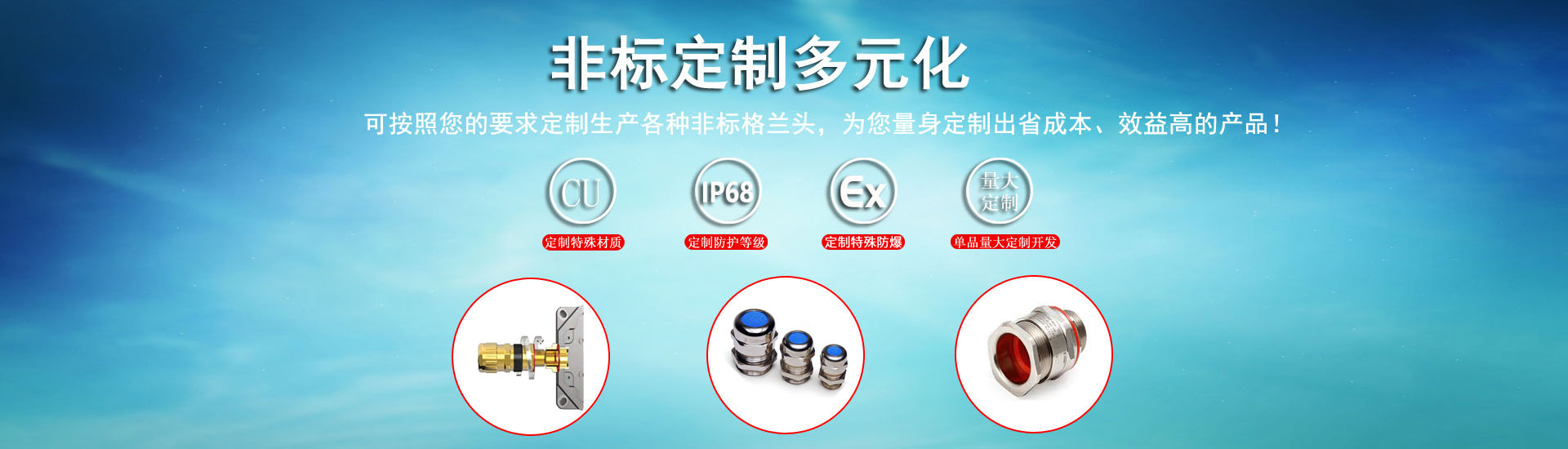 主營(yíng)產(chǎn)品:不銹鋼(304,316,316L)電纜接頭/格蘭頭,不銹鋼鎧裝電纜格蘭頭,電纜固定頭,不銹鋼電纜接頭,不銹鋼鎧裝防爆接頭,銅接頭,銅質(zhì)電纜接頭,金屬電纜接頭,